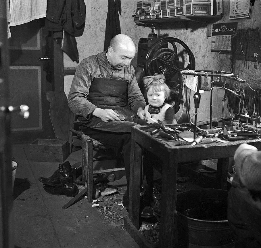 Schuster Overhage, genannt Schmelzer, und Elfriede Hüning. Die Werkstatt befand sich in der Brökerstegge.