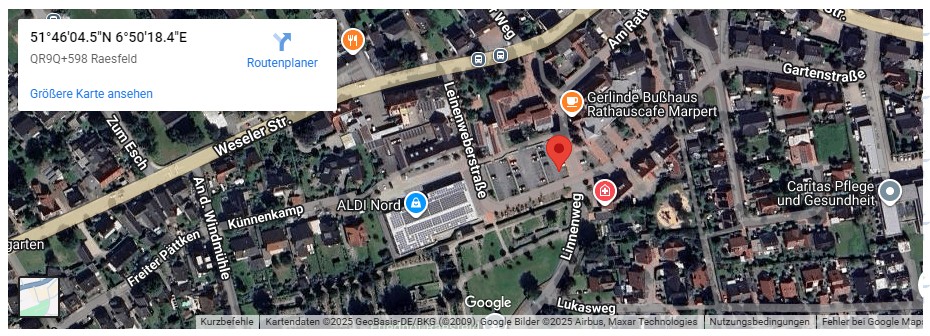 Zu den Wanderungen treffen wir uns am Parkplatz hinter dem Raesfelder Rathaus, Leinenweberstraße. Die Anfahrt erfolgt in privaten Pkw. Es können Fahrgemeinschaften gebildet werden. Für Verpflegung und Ausrüstung sorgt jeder selbst.